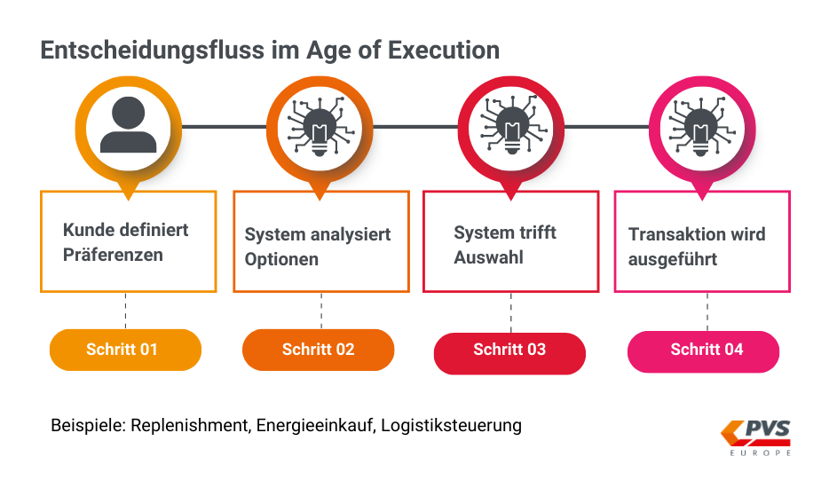 Der entscheidende Unterschied zum Age of the Customer liegt nicht in besserer Information. Der Wandel liegt in der automatisierten Umsetzung von Entscheidungen. Transaktionen werden zunehmend nicht mehr direkt zwischen Menschen durchgeführt. Sie werden von Menschen delegiert und anschließend von Systemen ausgeführt.